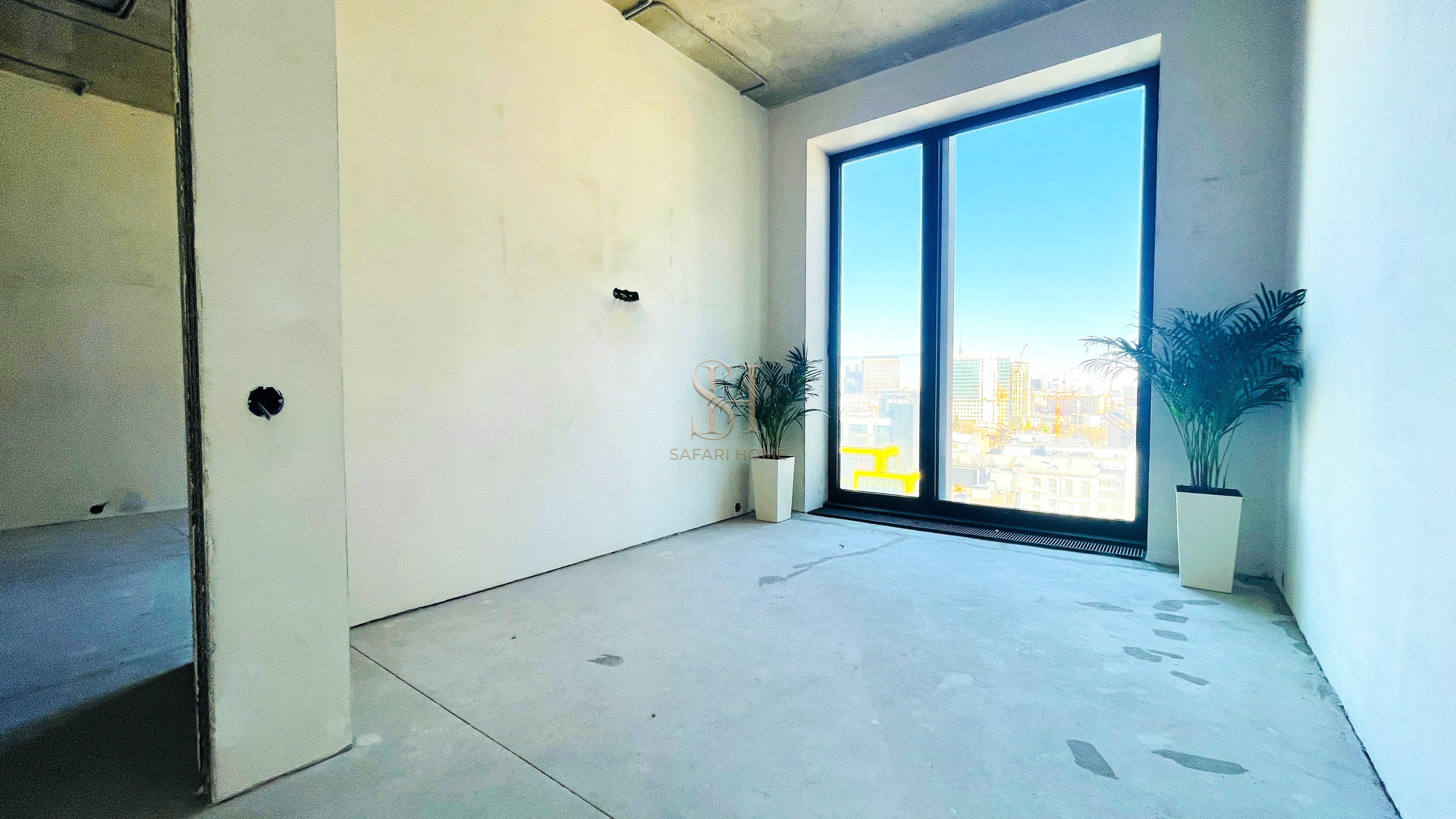 - Уже выполнены: разводка электричества, стяжка пола, перегородки, выравнивание стен под покраску, установка приточно-вытяжной вентиляции с климат-контролем.