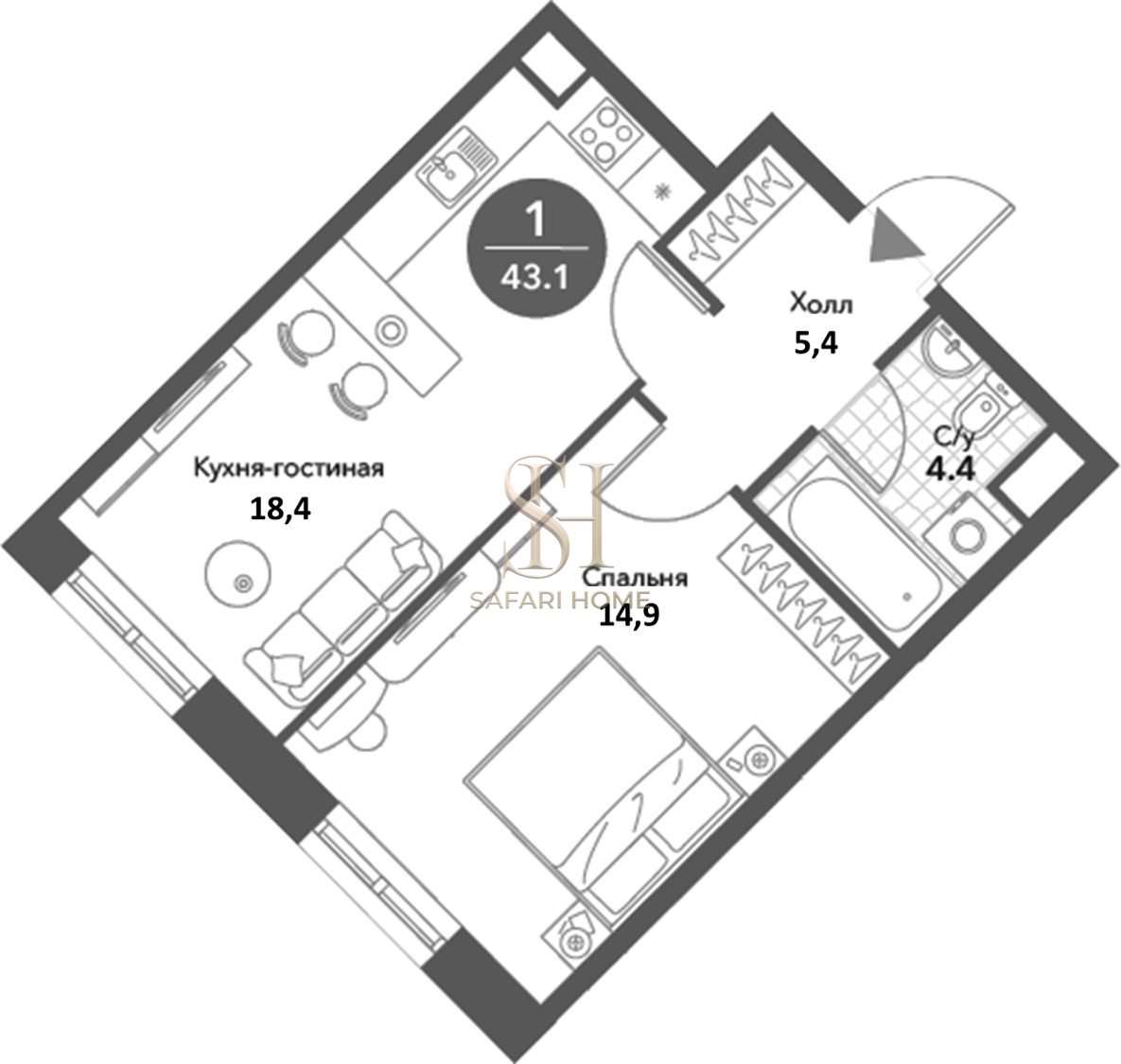 Площадь, кв.м. | 43.1 |